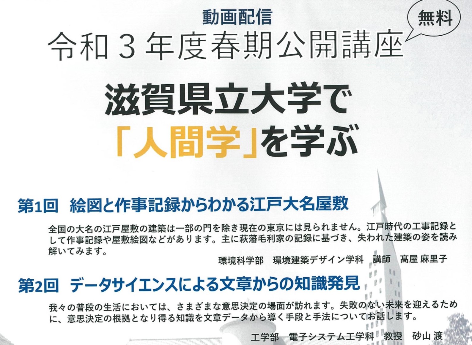 令和3年度春期公開講座のご案内